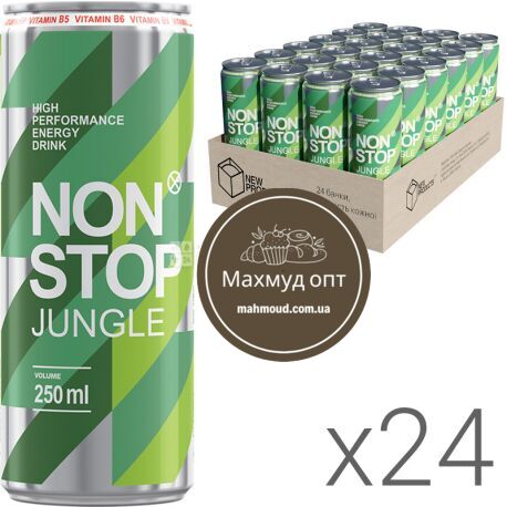 Напій енергетичний безалкогольний сильногазований Non Stop Jungle. Об'єм 250 мл/упаковка 24 шт